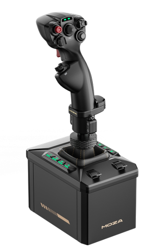 The MOZA AB6 Bundle pairs a high-torque 6 N·m direct drive base with the precision MHG flightstick, offering accurate force-feedback, 29 programmable signals, and immersive flight control. Its compact, spacecraft-inspired design supports desktop clamp (included), optional baseplate, or direct hard-mount, adapting to any cockpit or desktop setup. Compatible with MOZA and select third-party flightsticks, as well as major flight simulators